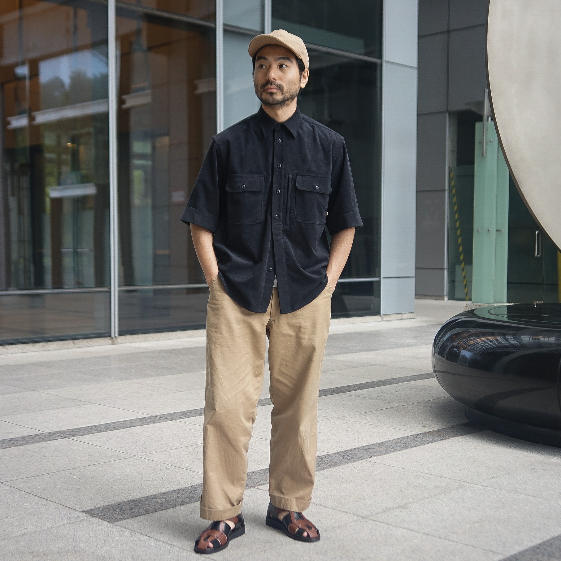 足元のグルカサンダルでリゾートライクなスタイルの完成です。